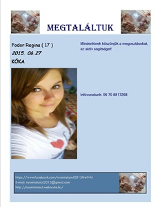 A kókai kislány keresését 2015. június 28.-án megszüntettük!