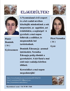 Pintér Dominik és Pécsi Veronika 2015. július 19. én tüntek el Győr városából.