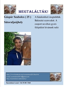 A sátoraljaújhelyi fiatalembert augusztus 02.-án megtalálták. Balesetet szenvedett!