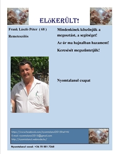Frank László Péter 2015. július 31. -én a hajnali órákban tünt el remeteszőlősi otthonából.